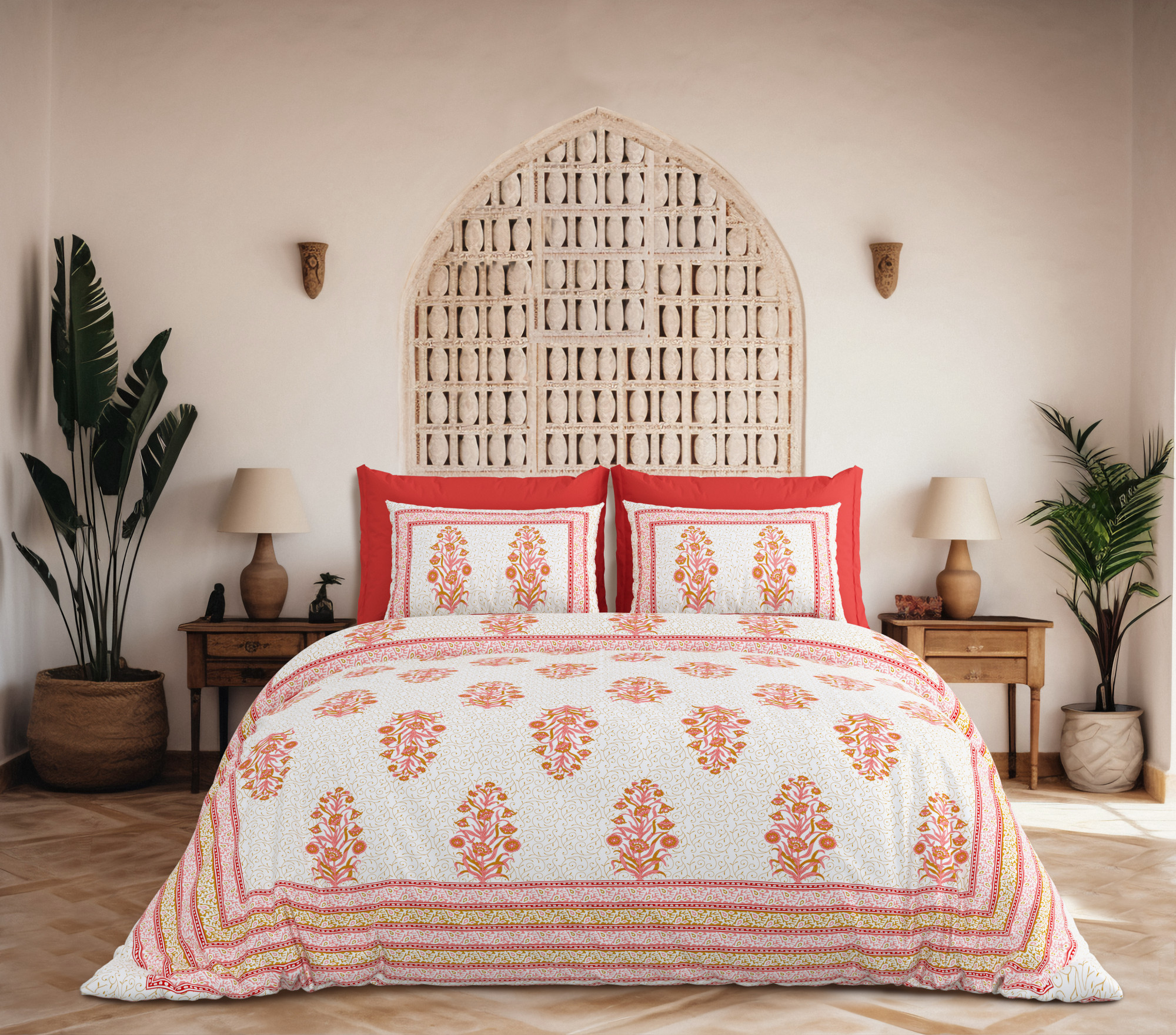 Celebrate the timeless charm of Rajasthan with the Jaipuri Collection, featuring exquistic prints on a soft and breathable cotton blend fabric. This double bed sheet set offers everyday comfort with a touch of ethnic elegance. Available in book fold. loose and gift box packing. It makes a perfect choice for both personal use and gifting.