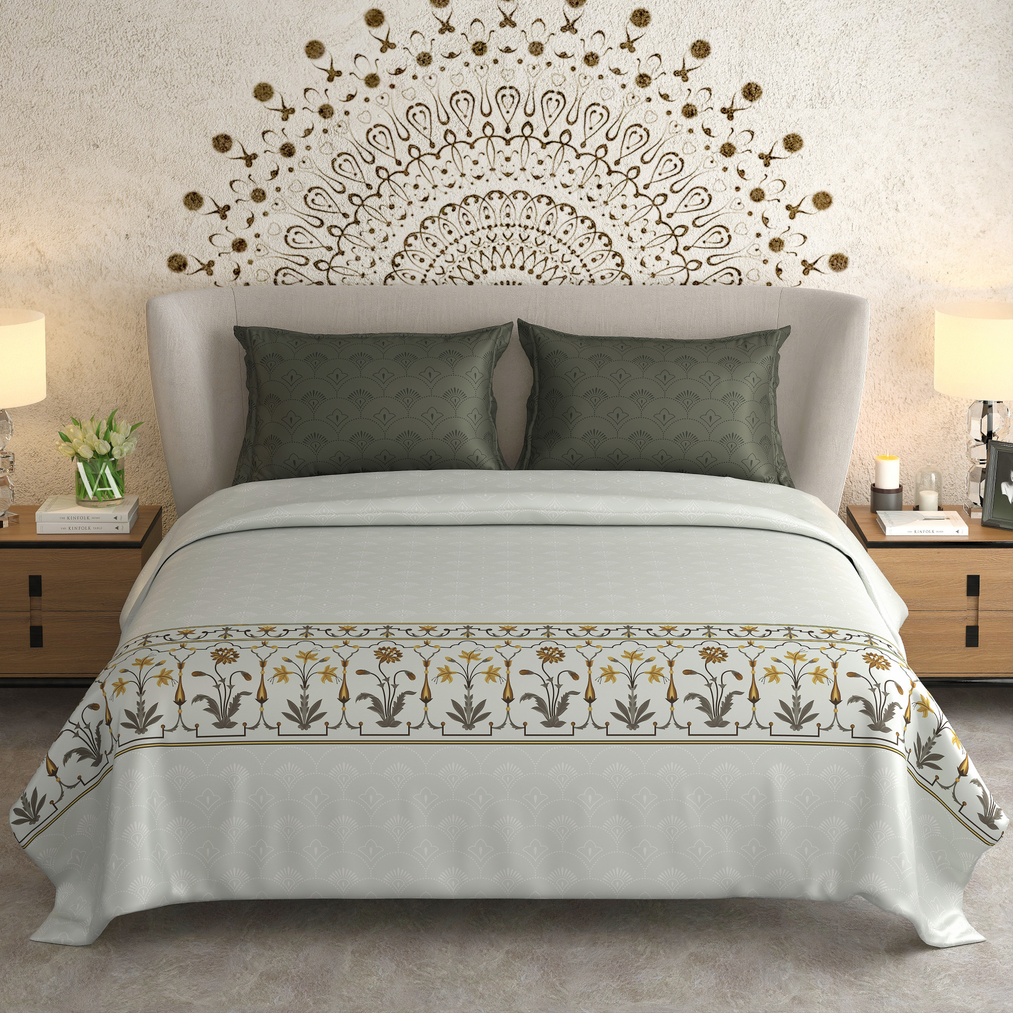 - Discover the sophistication of NAYAB BED LINEN. This 3-piece designer collection in 300 TC pure cotton invites timeless comfort and charm. King size, 300 TC, and adorned with refined elegance; where every night feels like luxury.